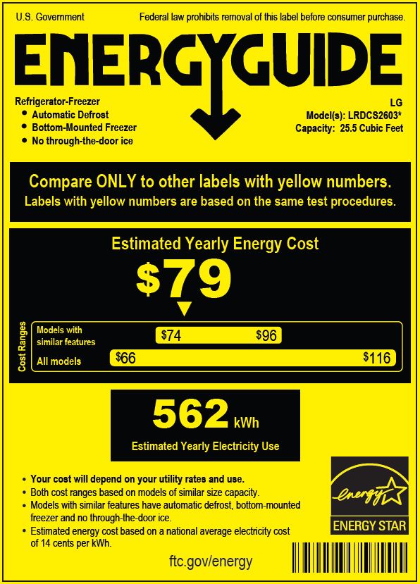 26 cu. ft. Bottom Freezer Refrigerator - LRDCS2603D
